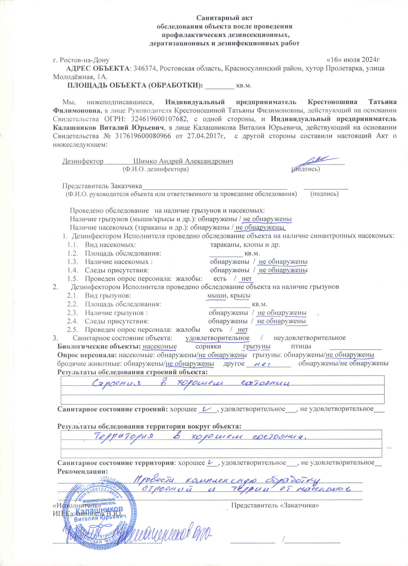 обследования объекта после проведения профилактических дезинсекционных, дератизационных и дезинфекционных работ.