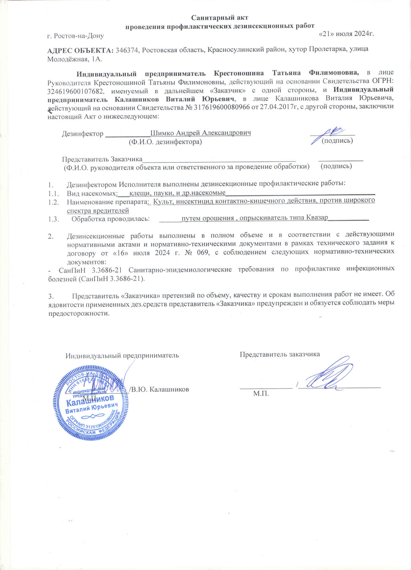 проведения профилактических дезинсекционных работ